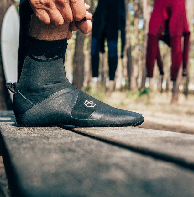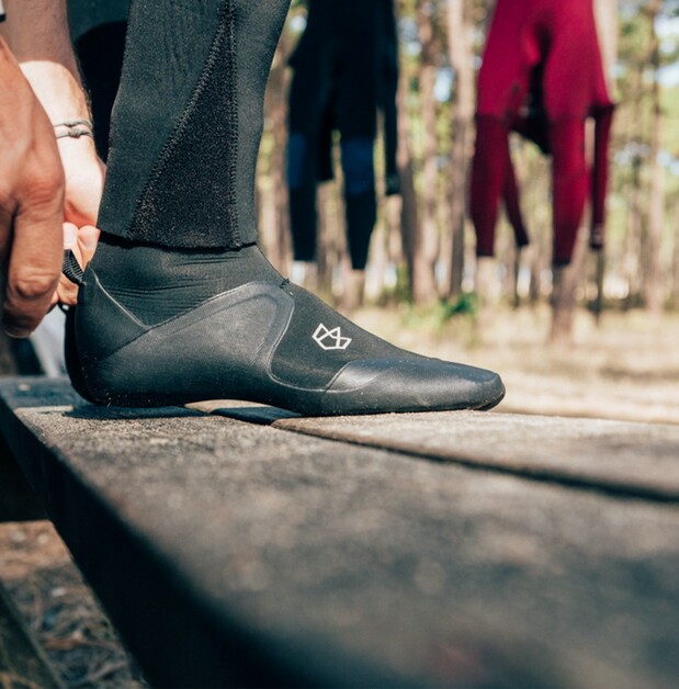 נעלי הגלישה שלנו נסגרות באמצעות סגירת Donut Cuff, המונעת חדירת מים ומונעת הצטברות מים בתוך הנעל.
